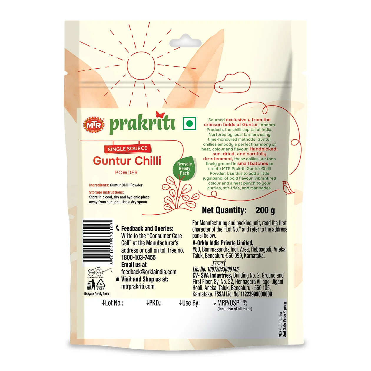Grown in the fertile, sun-kissed soils of Guntur, Andhra Pradesh, these chillies are renowned for their bold, lingering heat and bright red colour. Each chilli is handpicked at the peak of ripeness to ensure maximum flavour, then carefully sun-dried to preserve its natural essence. De-stemmed and ground in small batches with meticulous care, this chilli powder beautifully captures the rich, distinctive character of the region.
